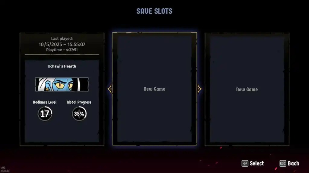 Yes. Absolum features three active save slots, allowing you to maintain multiple profiles. Each slot displays details such as your current character, Radiance level, playtime, current location, and overall progress.
