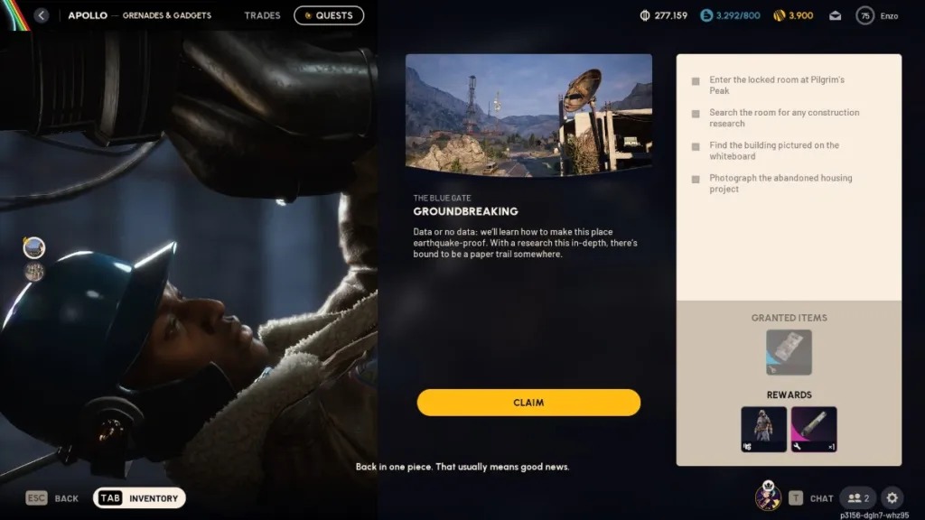 Before starting a Blue Gate raid, get the Blue Gate Communication Tower Key, which you receive when accepting the Groundbreaking quest from Apollo (after completing the Deciphering the Data quest).