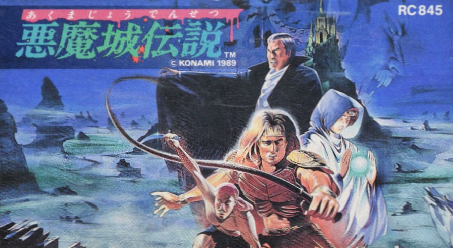 - Japanese (Famicom): Dynamic composition of Trevor Belmont facing Dracula’s castle, with intricate linework and warm gothic tones.