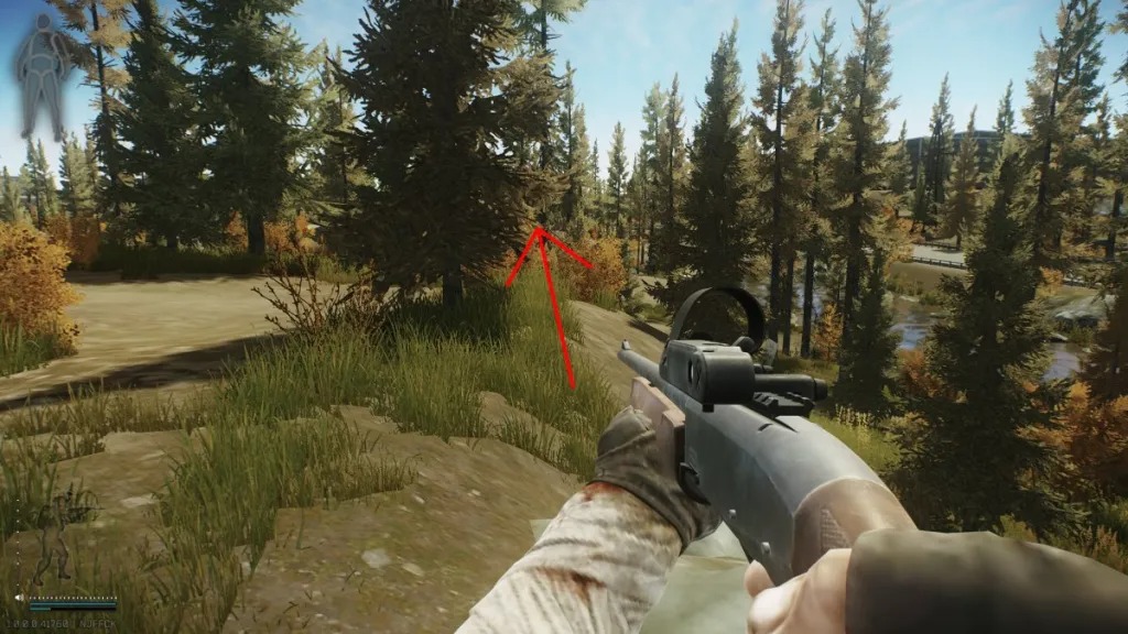 From the Emercom Checkpoint side, you’ll notice a river to your right. Be careful near the river, as a sniper scav patrols this area.