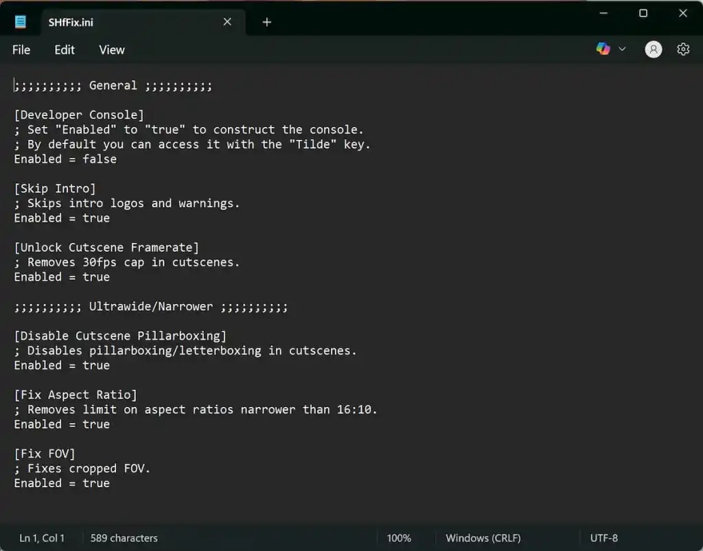 Each option can be customized in the SHfFix.ini file, which can be opened and edited in Notepad or any text editor.