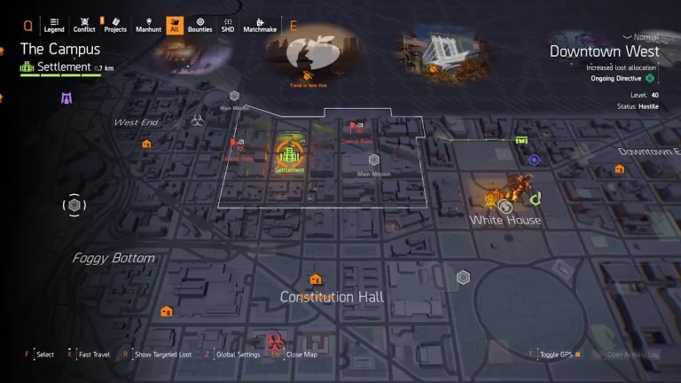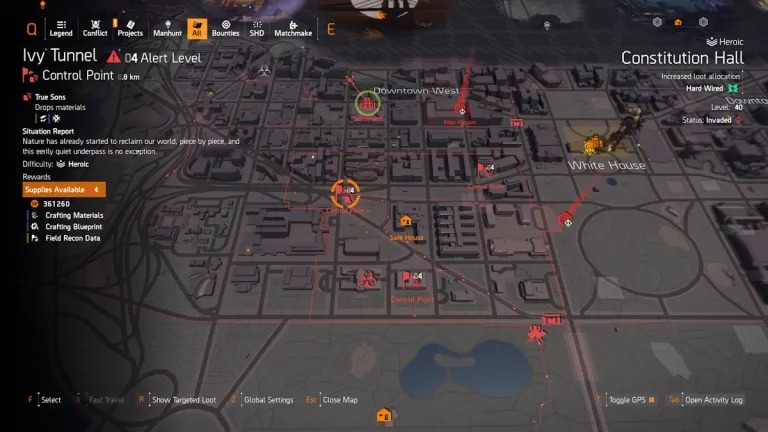 Solution: Take over two control points in Downtown West or Constitution Hall. Downtown West has two control points, while Constitution Hall has three. Defeat all enemies at each point and defend it to complete the activity.