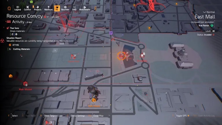 Solution: Complete two Resource Convoy activities. These are open-world events where enemies transport supplies across the map. Resource Convoys are marked on the map with a chest icon, and you can complete two of them in any region of Washington D.C.