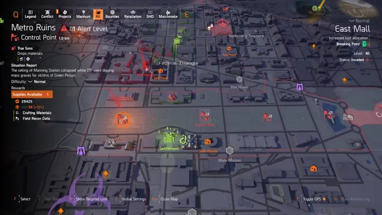 To complete this objective, players must capture the Metro Ruins Control Point. This control point is located in the East Mall region, just south of the American History Museum mission. If the control point has already been cleared, you’ll need to reset control points on the map before taking it over again to progress the Manhunt.