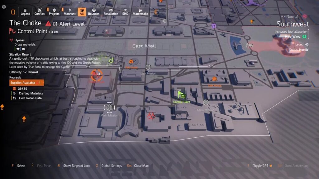 To complete this objective, you need to finish one Propaganda Broadcast activity in either the East Mall or Southwest region. Propaganda Broadcasts are open-world activities marked by a megaphone icon on the map and require you to survive multiple waves of enemies. Completing the activity once in either region is enough to satisfy the requirement.