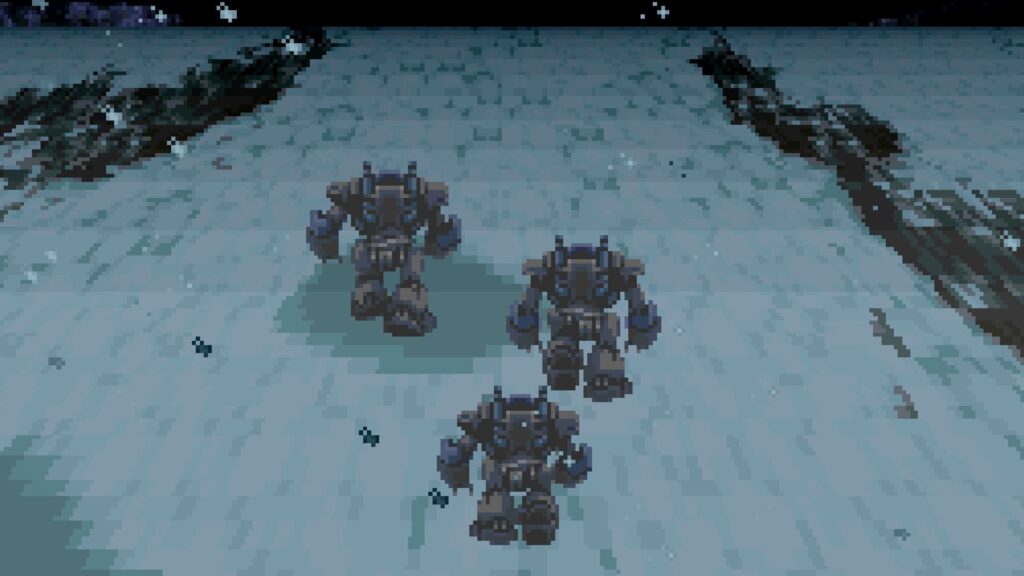 Before any combat or dialogue, the screen fills with stars, then shifts to a frozen tundra as mechanical walkers march across snow, backed by Nobuo Uematsu’s haunting score.